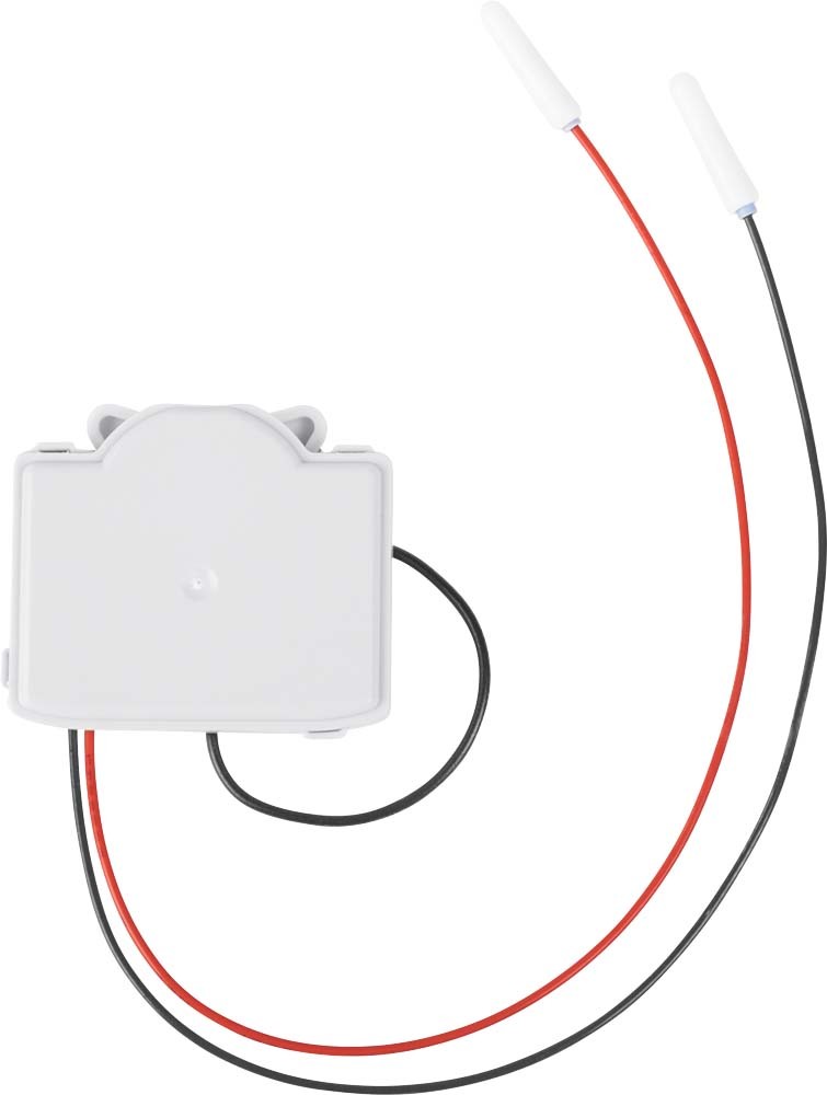 Der flache Funksender passt z. B. auch noch hinter Installationstaster, wenn dort nur wenig Platz vorhanden ist. Er kann aber auch zahlreiche Typen von Meldekontakten zu Funkmeldern im Homematic System machen, die sonst nur bedrahtet einsetzbar waren, z. B. vorhandene Magnetkontakte. Er kann so auch mehrere Einbruchmeldekontakte, die in Reihe geschaltet sind, auswerten.